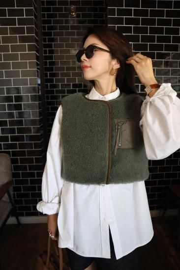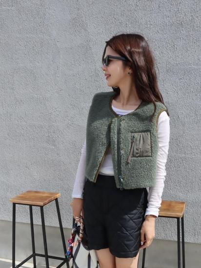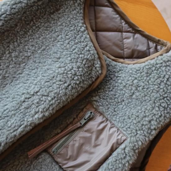 ボア×キルティングのリバーシブルベストに新色カーキが登場。